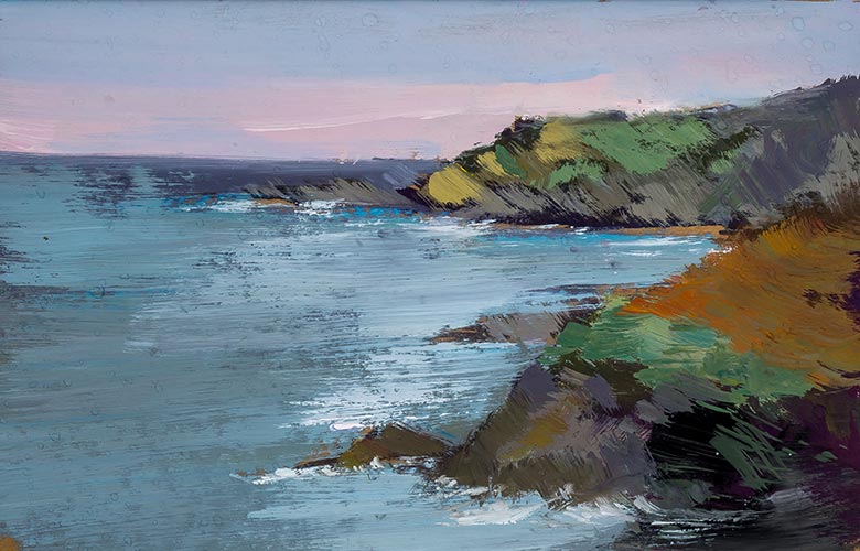 Blustery seas painted on location looking towards the lighthouse in Ilfracombe from Hillsborough.