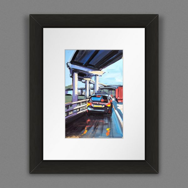 This piece was painted from a photograph taken whilst going through the Spaghetti Junction on the way to Birmingham. I have always been fascinated by this intertwining structure of columns and roads, and how its sculptural qualities are accentuated in the strong directional morning light.