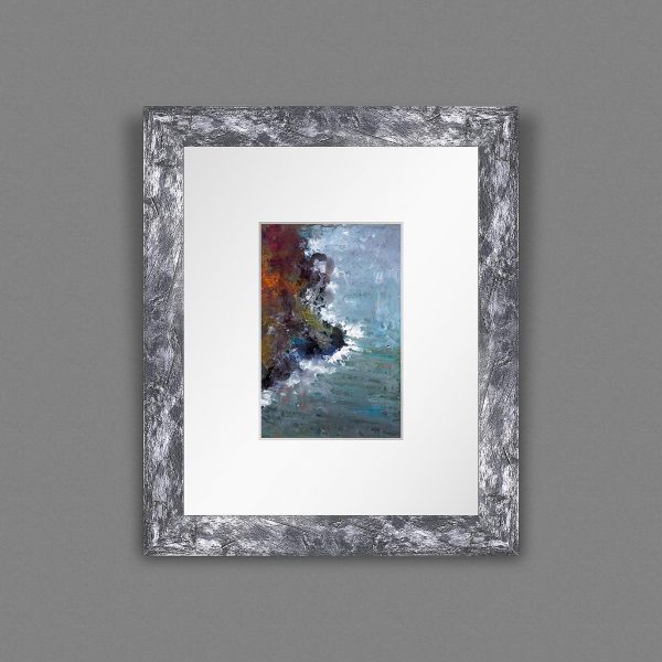 Working outdoors through all weather conditions is imperative to my practice, as it allows me to experience the true essence and dynamism of a place. I painted this piece whilst battling with the rain and wind on the North Devon coast, as the force of the sea was washing up against the rocks below me. Raindrops fell onto my sketchbook as I painted, causing the paint to pool and run down the page, which created a piece that organically embodies the vigorous movement of the scene. Nothing beats the feeling of being at one with the landscape, and I love working collaboratively with nature to recreate this feeling in my artwork.
