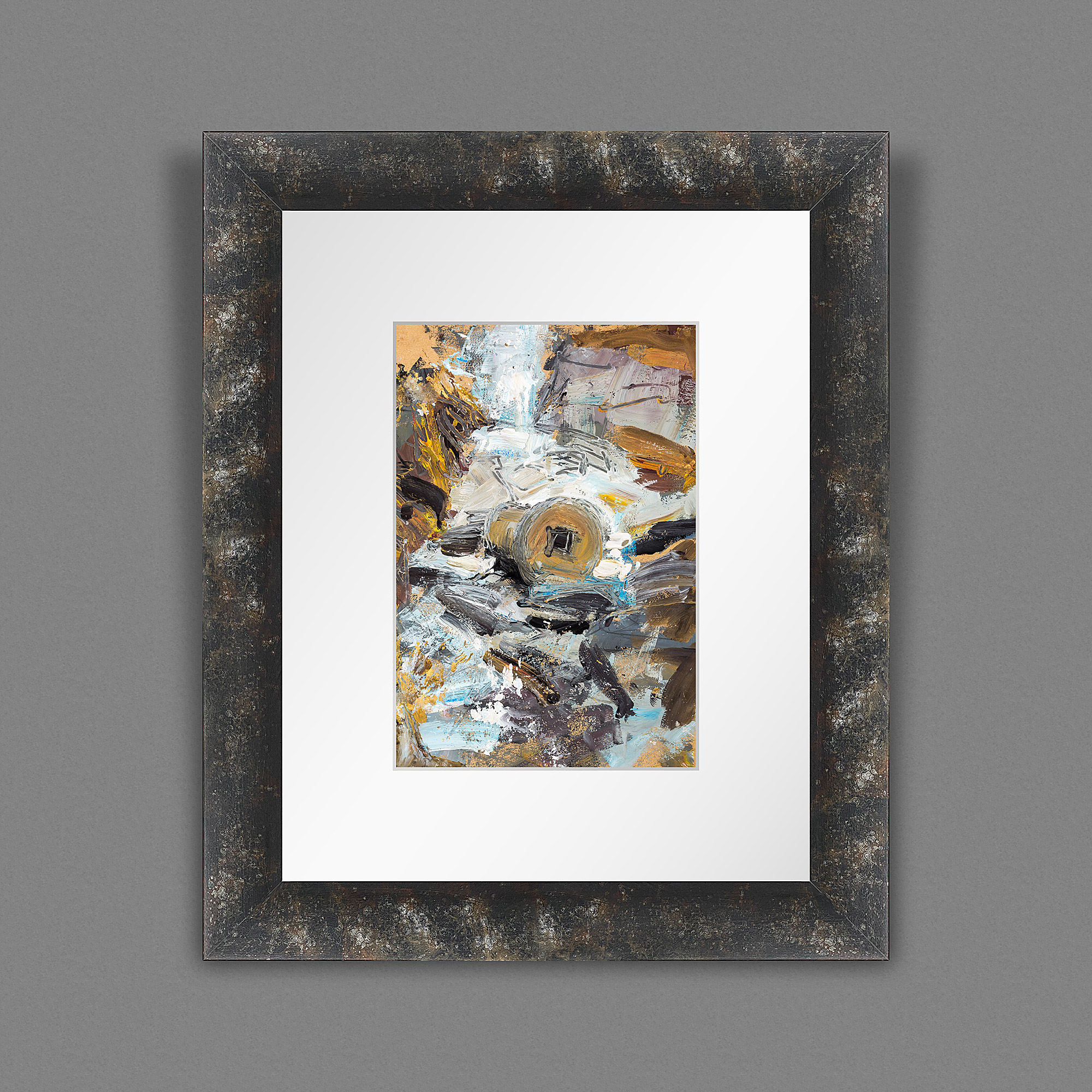 Making sure there would be no exception to my 'paint every day' mantra needed to complete the project, I made sure I found time to get this quick painting whilst walking with my family on Christmas Day, along one of my local beaches. I came across this interesting concrete stone with a hole in the middle. The cylindrical form gives a focal point to this abstract explosion of energetic paint splashes and scored lines.