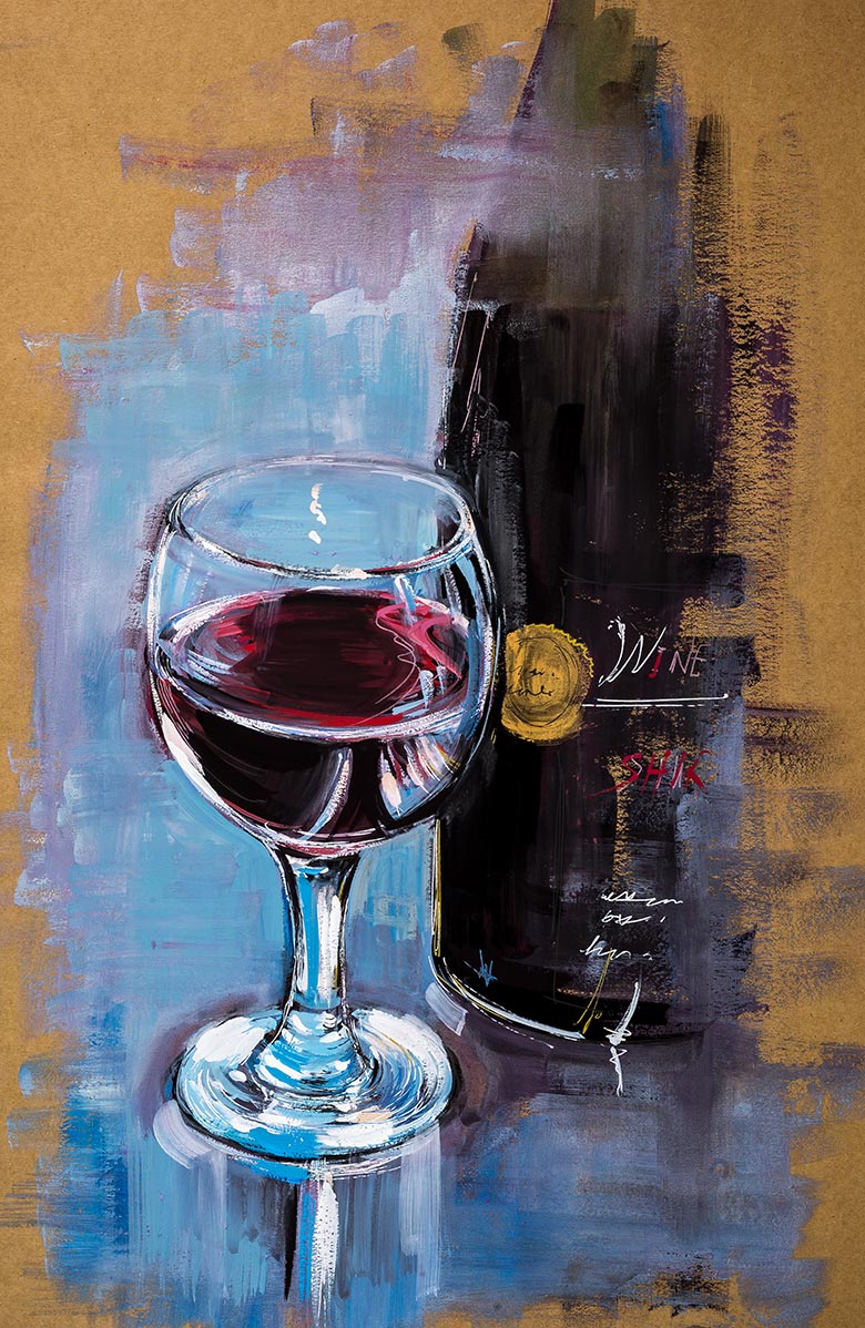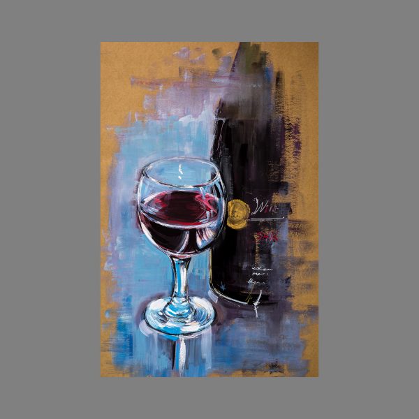 Glass and transparent objects are tricky to paint as you are required to paint negative space and reflections to create form and solidity. With this painting of a glass of wine, I wanted to portray the richness in colour and flavour of the grape, whilst also capturing the slight translucence of this delicious beverage. Sharp highlights on the glass in blues and yellows reflect the colours of the surroundings, firmly situating the glass of wine within the scene.