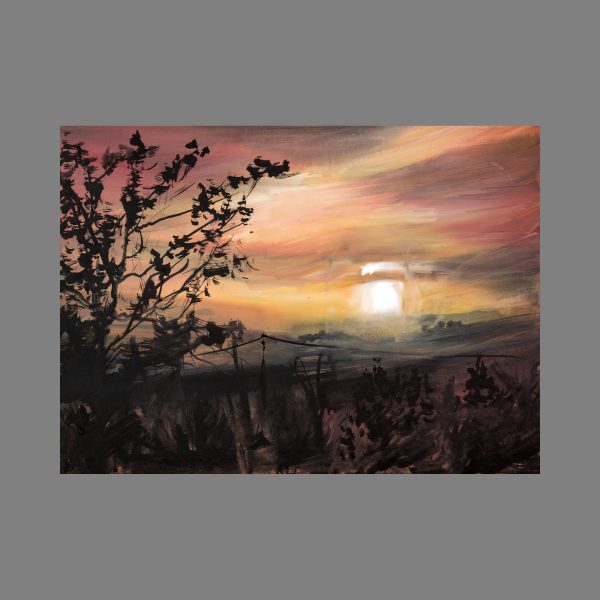 Catching the sunrise reminds me of the beauty of the natural world around me and always puts me in a good mindset for the new day ahead. It was so calming to paint this piece whilst watching the sun emerge through the soft haze, accompanied by birdsong and the silence of the earth at peace around me.