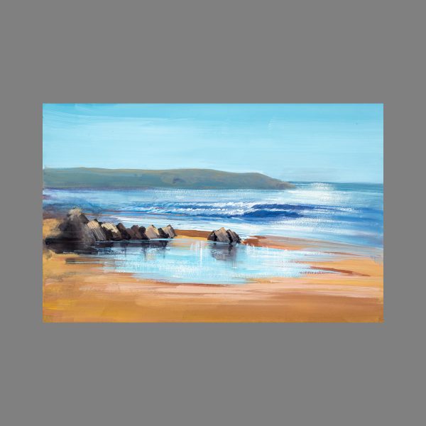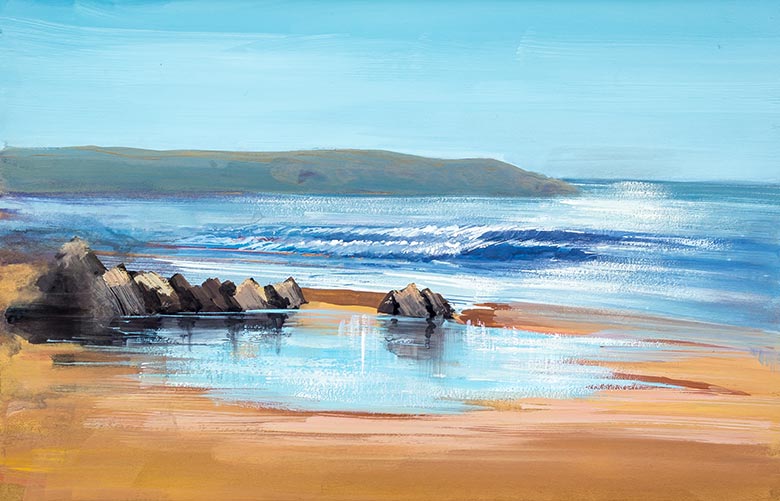 Glistening waves rolling into the shore at Woolacombe Beach.