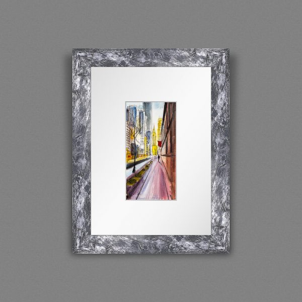 Fine sketched lines lead the eye to the glamorous and unique Chrysler Building in the distance.