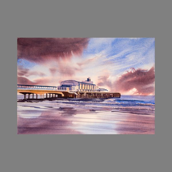 This painting of Bournemouth Pier focusses on the unique ability of light to influence the mood of a scene. I thought about where the light hits the pier and creates shadows, portraying the great presence of this historic landmark on the Dorset coast.