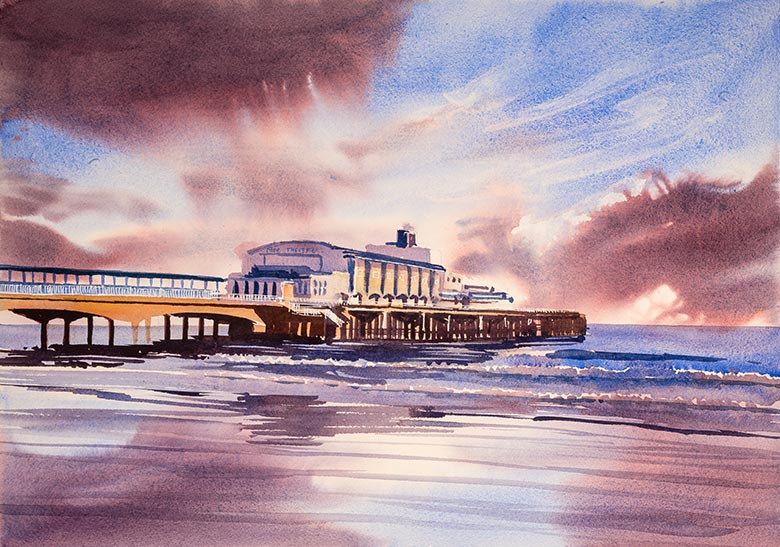This painting of Bournemouth Pier focusses on the unique ability of light to influence the mood of a scene. I thought about where the light hits the pier and creates shadows, portraying the great presence of this historic landmark on the Dorset coast.