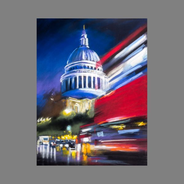 To create this St Paul's piece, I worked in vivid pastels against dark paper. Pastels can be easily smudged and blended to create the impression of blurred motion, working perfectly for this fast-paced city scene.