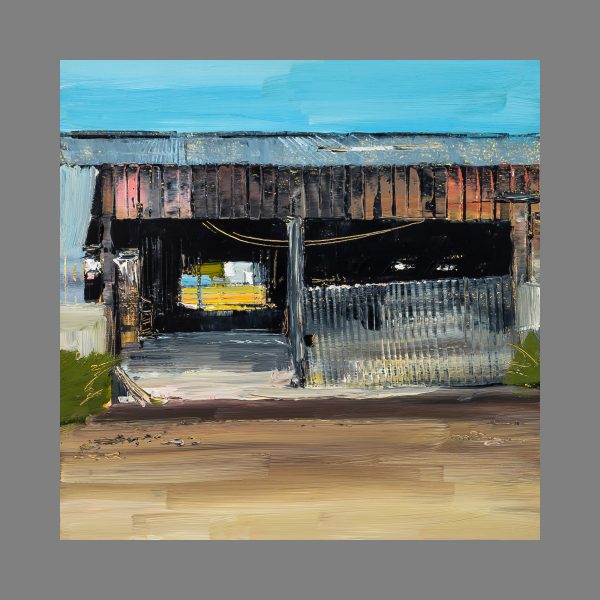 One of the qualities I love most about oil paints, is that its thick consistency allows me to create texture. Capturing texture was particularly important for this piece, as the barn was constructed of a variety of different materials. I used a palette knife, and scraped using the end of a brush to give the piece a tactile surface. This painting was of the barn behind my house, which is now derelict as the farmer has left it to rot. I love the distant rectangle of light coming through the window in the farm building, as it really draws your eye into the piece and creates a sense of distance and space.