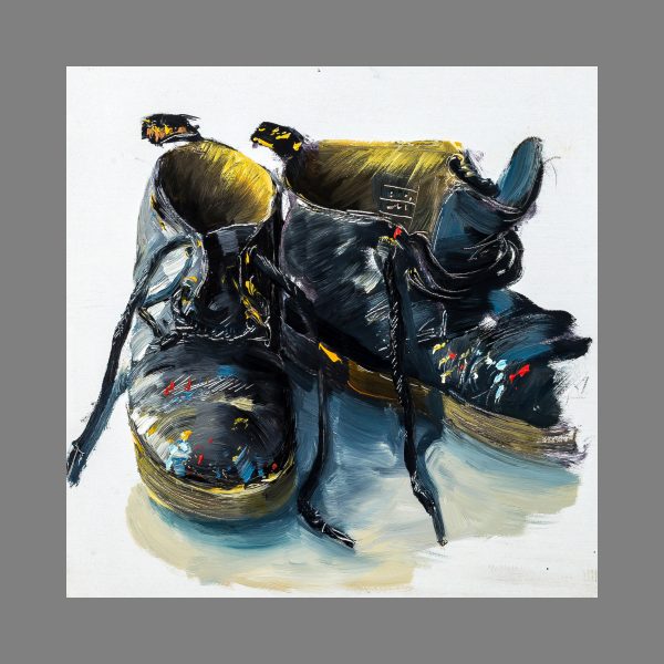 These are my favourite pair of Dr Martens, so much so that I am reluctant to buy another pair even though the soles are wearing thin! Over time, they have acquired many scuffs, creases and splatters of paint. Capturing the variety of textures and imperfections was an enjoyable task, as I was able to play around with my brushwork.