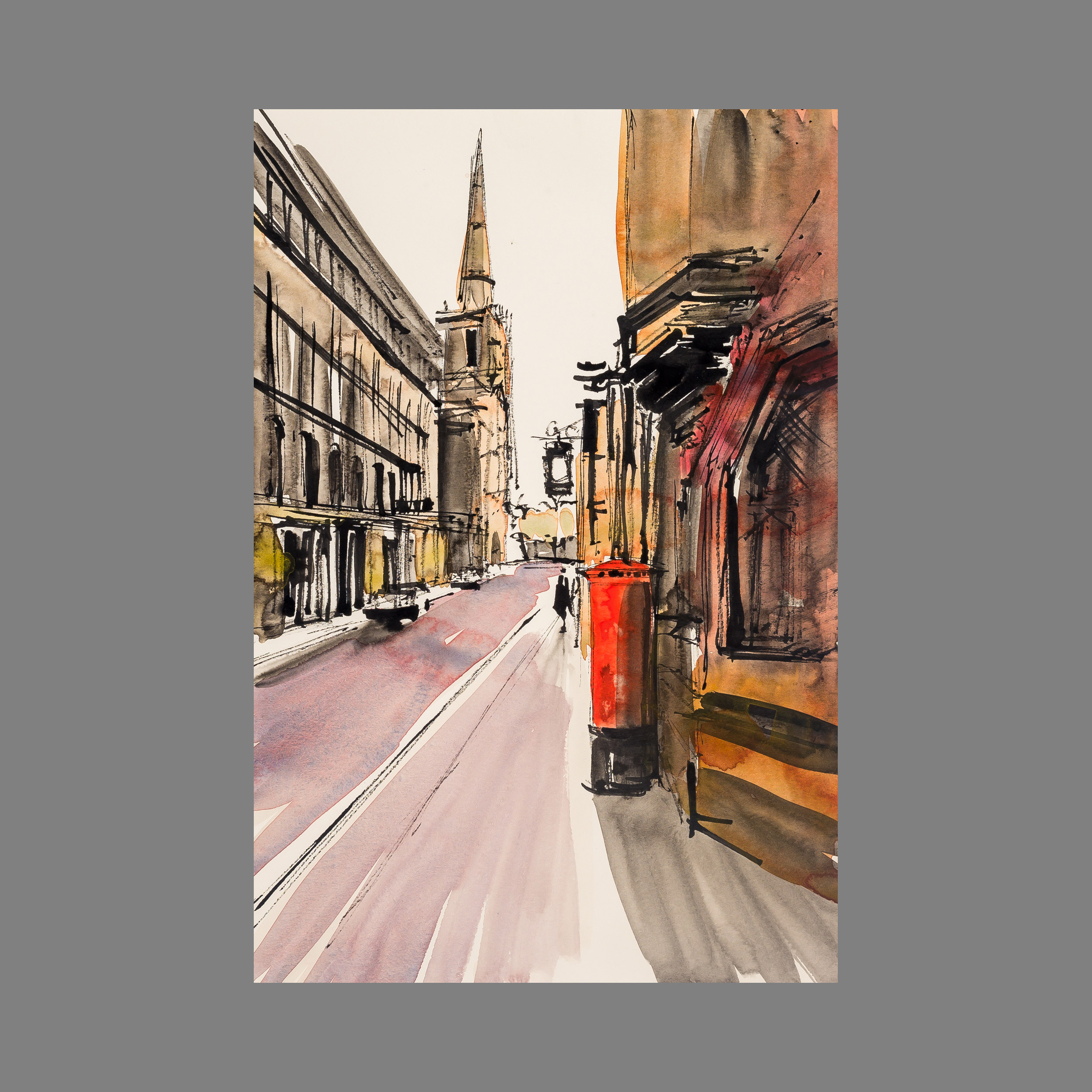 Looking towards Christ Church with St Ewen on Broad Street in Bristol.