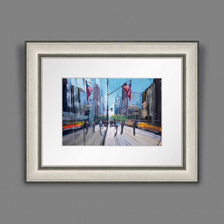 In March, I travelled to New York to launch my new collection at the Chase Contemporary Gallery, finally fulfilling my lifelong dream of exhibiting my work in New York. Being back in New York provided me with an amazing opportunity to sketch from observation, whilst absorbing the bustling crowds, flashing lights and constant hum of traffic that give the city its unique identity. This direct insight was invaluable for creating more dynamic and authentic paintings.